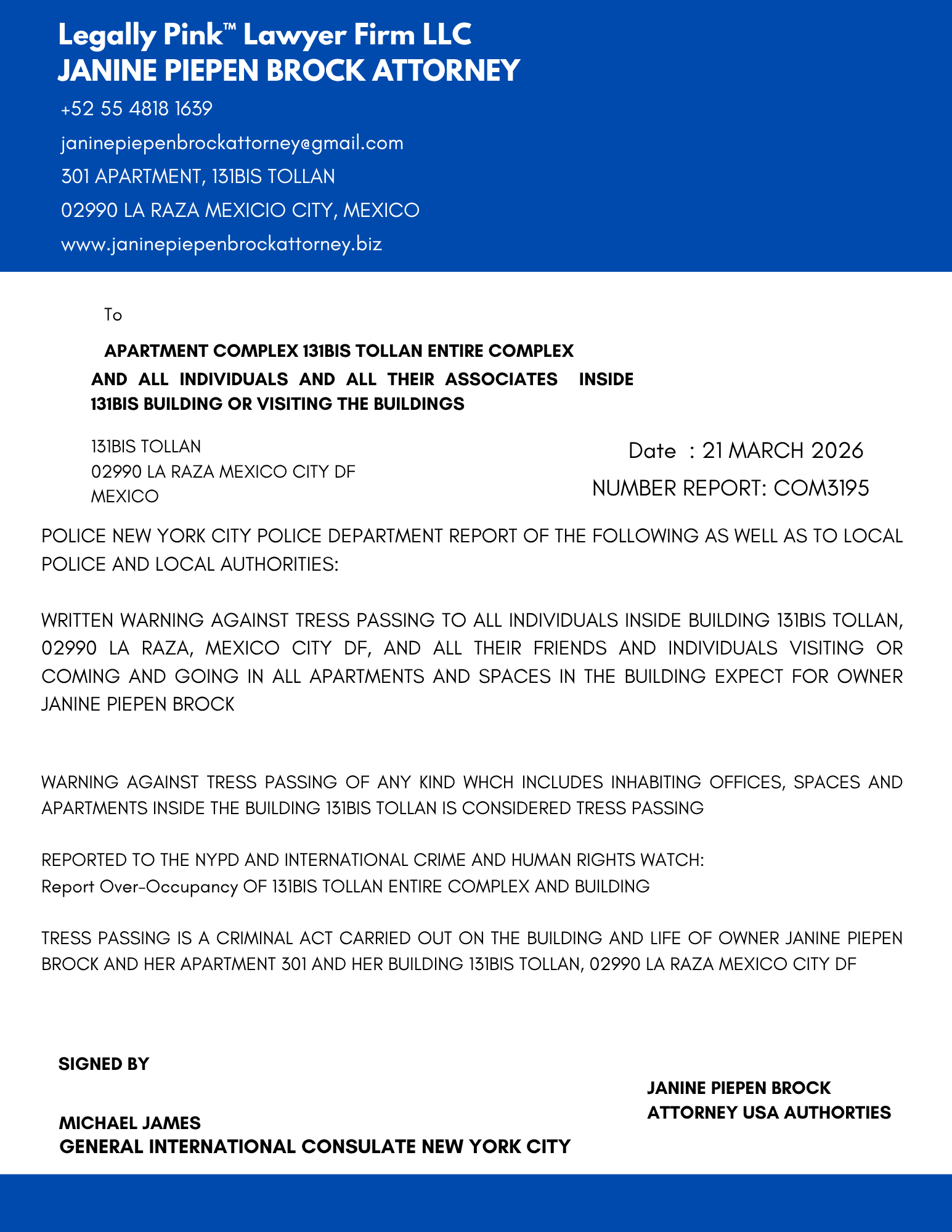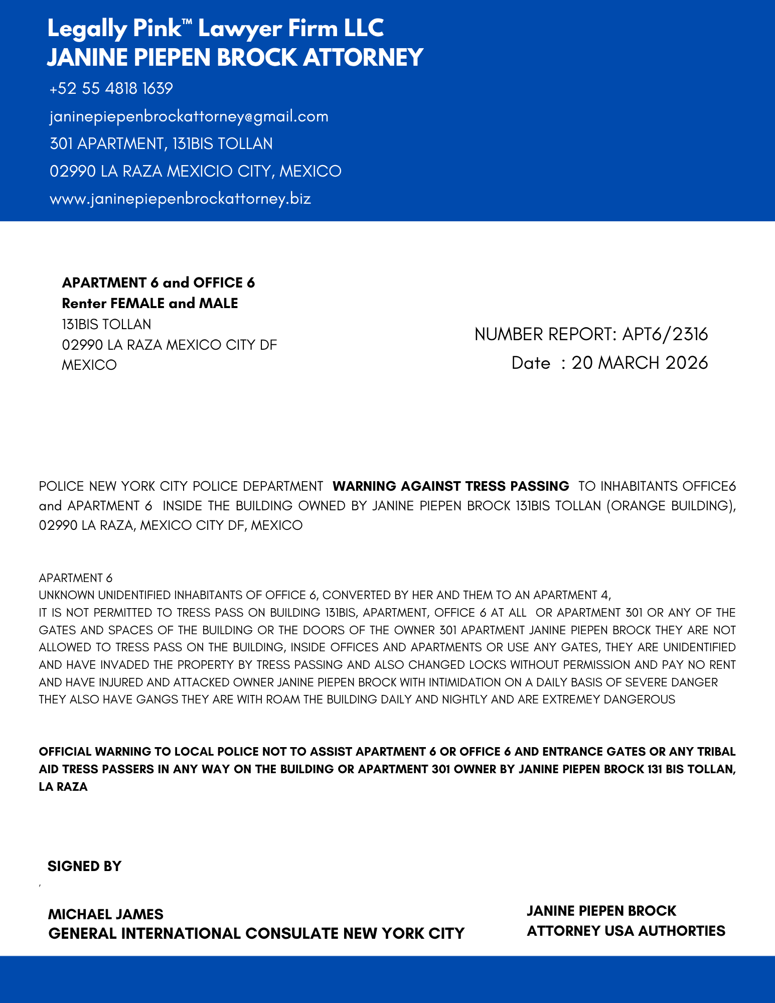 NOTICE TRESS PASS APT. 6 OFFICE 6 20 MARCH 2026