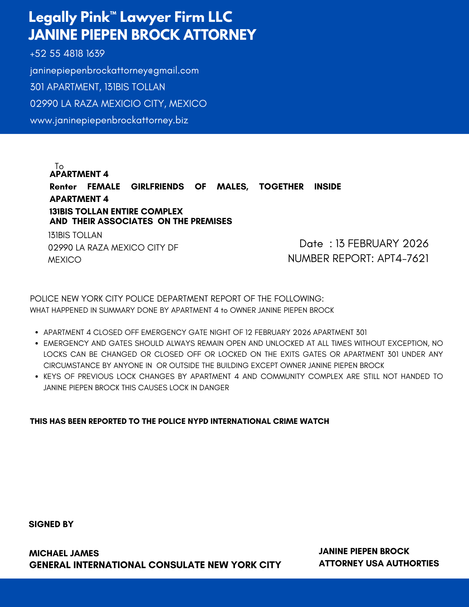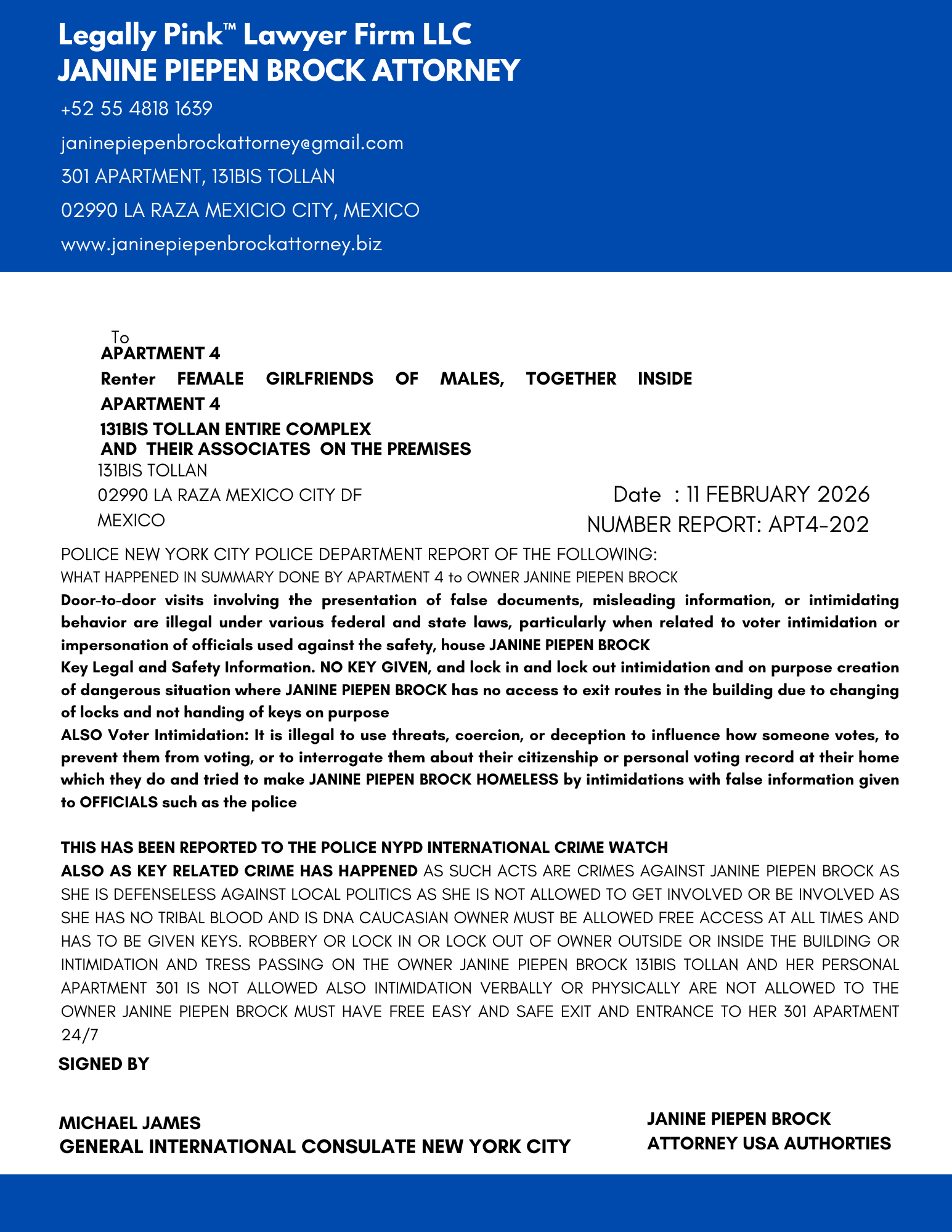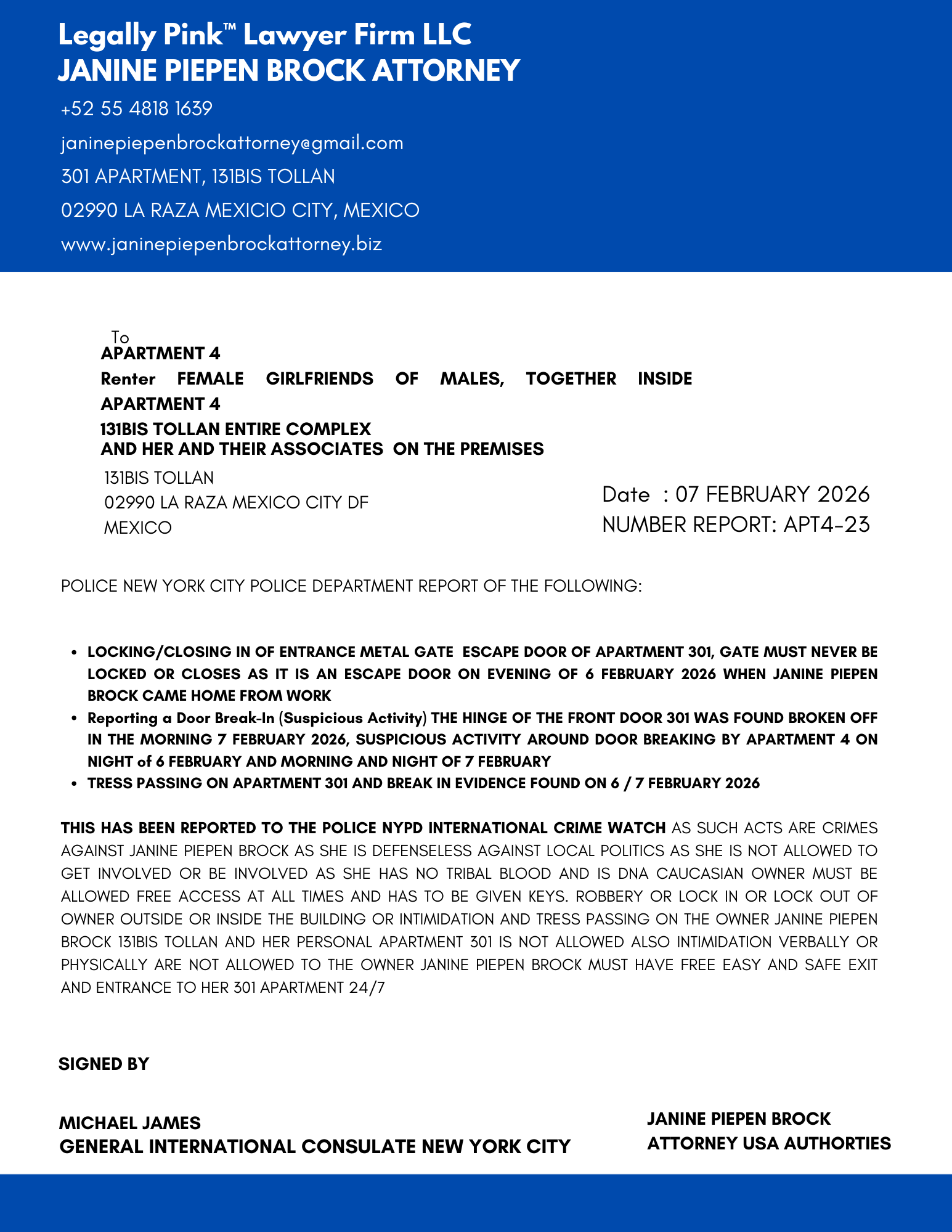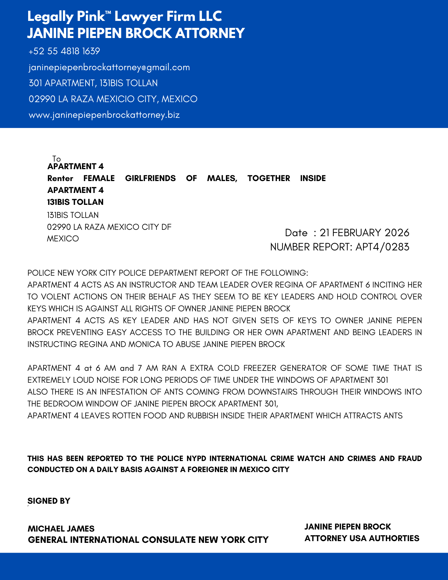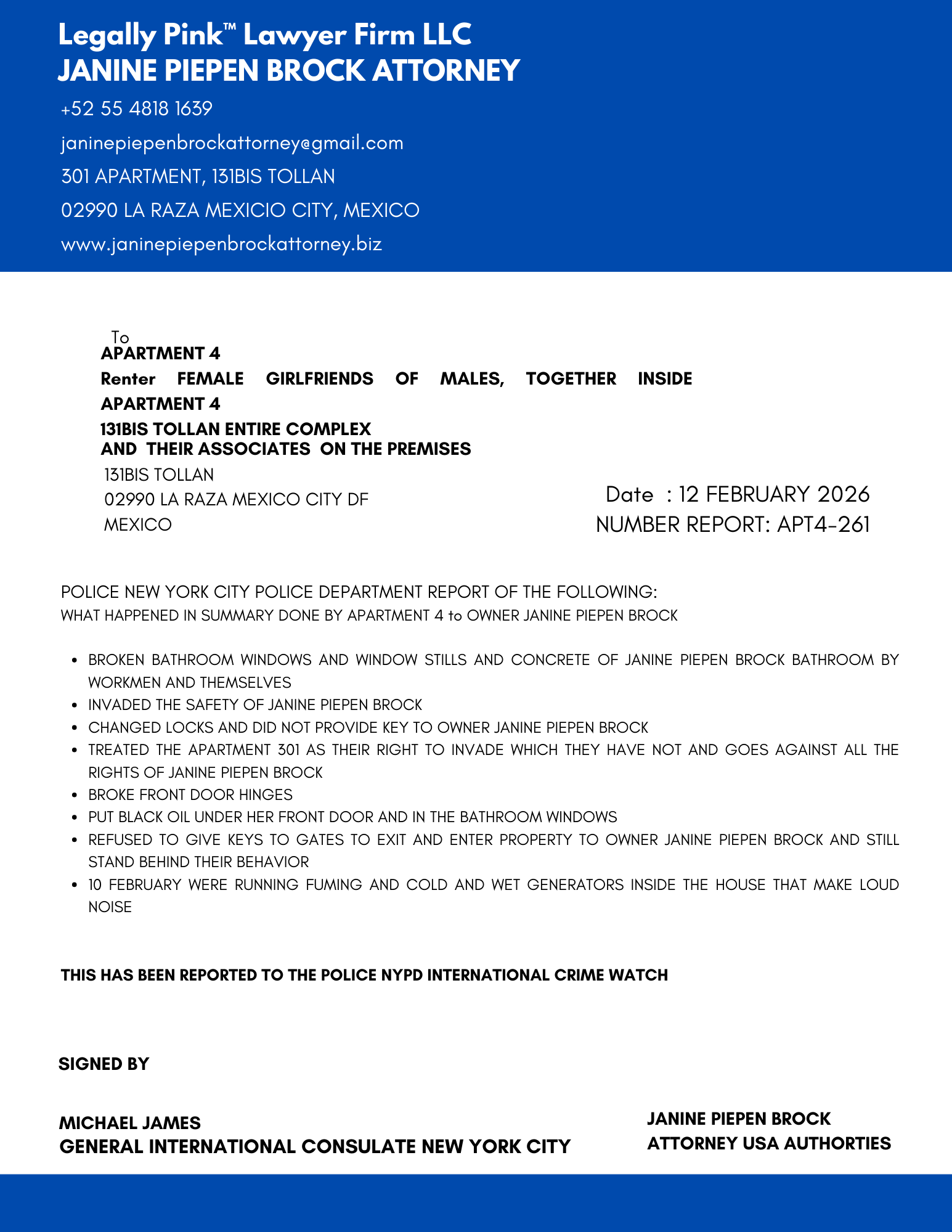 REPORT APARTMENT 4, FEMALE RENTER 04 JANUARY 2026