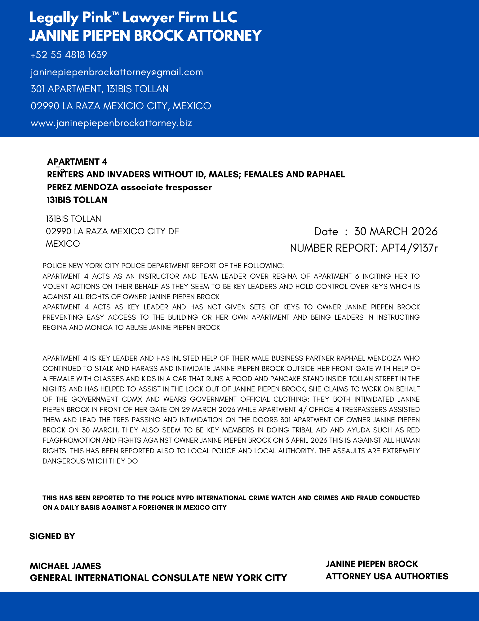 REPORT APARTMENT 4, FEMALE RENTER 04 JANUARY 2026